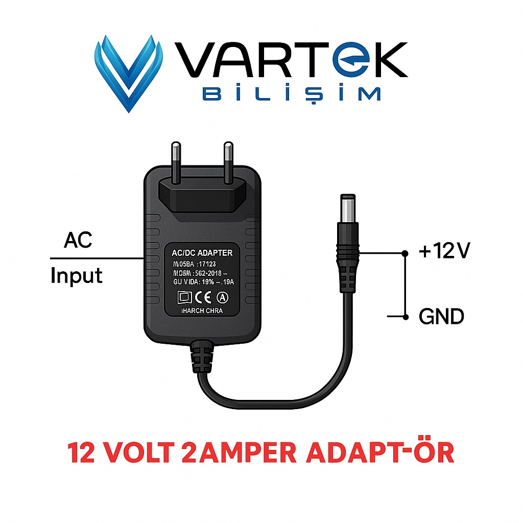 Bu 12V 2A adaptör, yüksek performanslı çıkış gücü ve dayanıklı yapısı ile cihazlarınıza uzun ömürlü ve güvenli enerji sağlar.