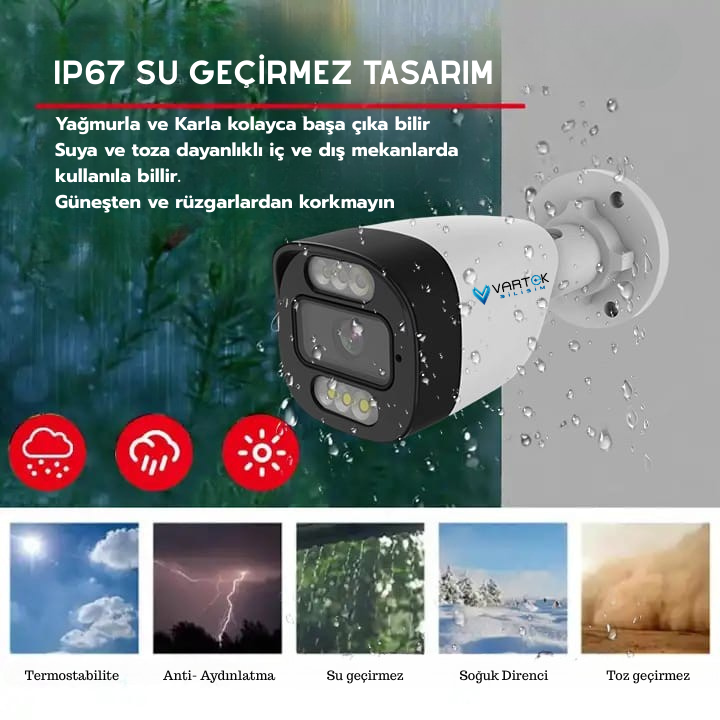 Bu 5MP güvenlik kamera seti; ev, apartman, site, iş yeri, restoran, otopark ve depo gibi alanlarda güvenilir bir çözüm sunar. IP67 sertifikalı suya dayanıklı tasarımı, tam renkli gece görüş teknolojisi ve yüksek çözünürlük performansı ile her detayı hem gündüz hem gece net şekilde izleyebilir, güvenliğinizi en üst seviyeye çıkarabilirsiniz.