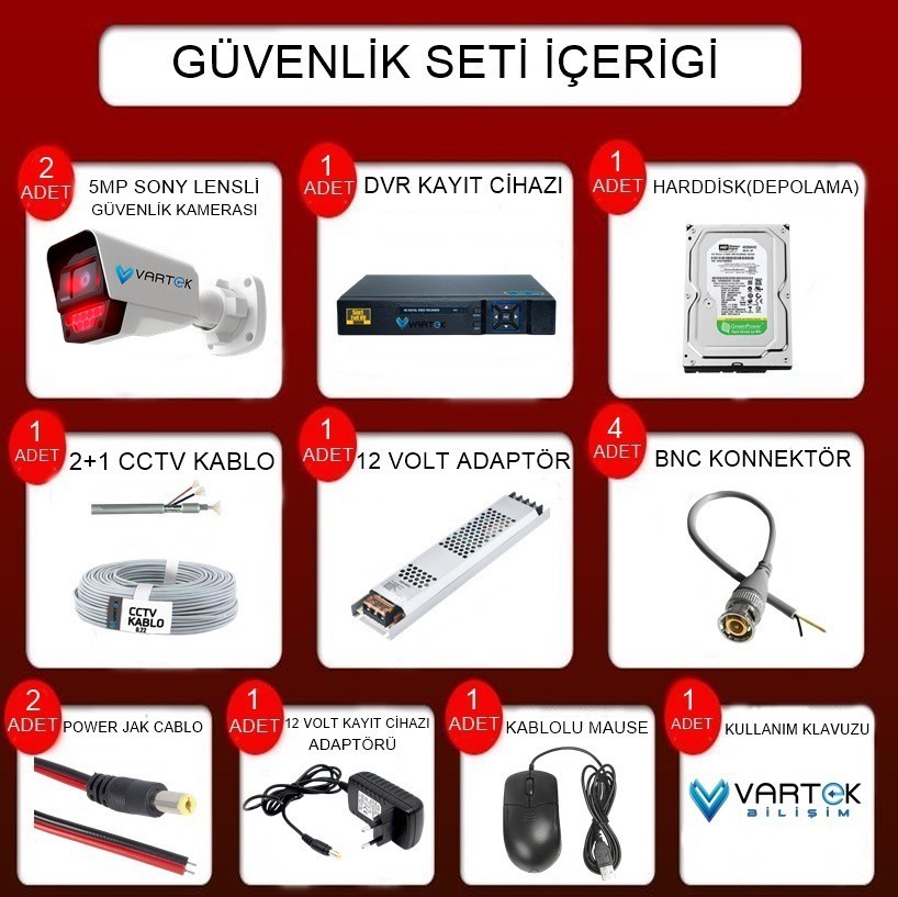 2 Kameralı Gece Görüşlü 5MP Sony Lensli AHD Güvenlik Kamerası Seti
