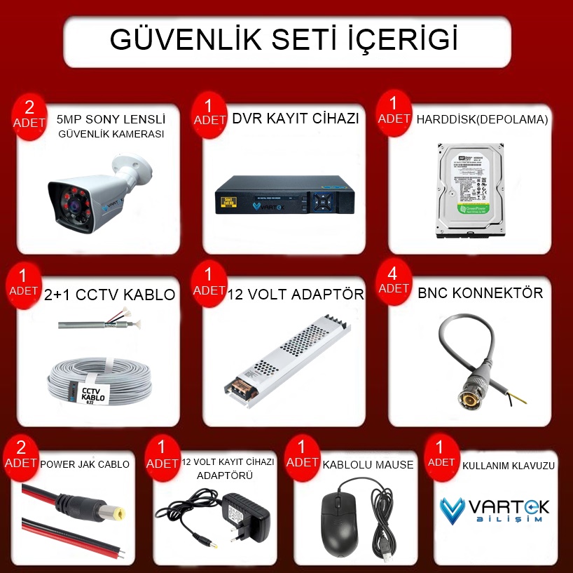 2 Kameralı Gece Görüşlü 5MP Sony Lensli AHD Güvenlik Kamerası Seti