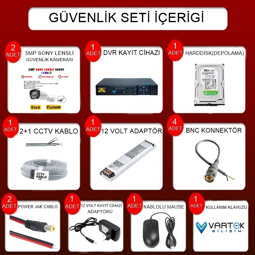 2 Adet 5MP Gece Renkli AHD Kamera