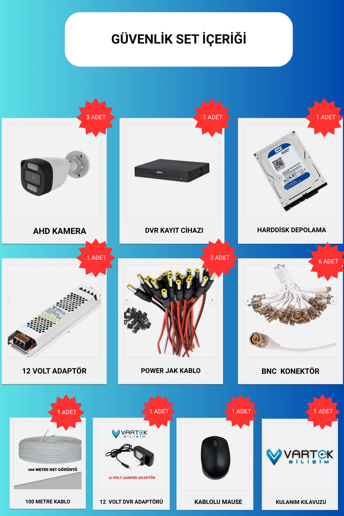 Bu 5MP güvenlik kamera seti; ev, apartman, site, iş yeri, restoran, otopark ve depo gibi alanlarda güvenilir bir çözüm sunar. IP67 sertifikalı suya dayanıklı tasarımı, tam renkli gece görüş teknolojisi ve yüksek çözünürlük performansı ile her detayı hem gündüz hem gece net şekilde izleyebilir, güvenliğinizi en üst seviyeye çıkarabilirsiniz.