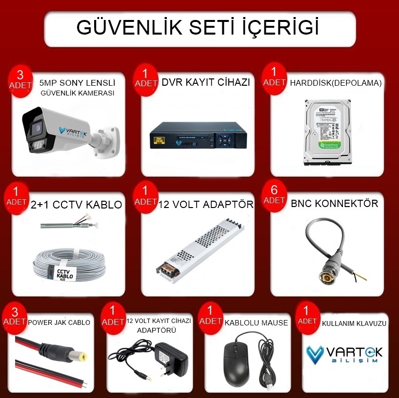 3 Kameralı 9 Atom Led Gece Renkli 250GB HDD 5MP Ahd Güvenlik Kamerası seti için henüz yorum yapılmadı. Bu ürüne ilk yorumu yapan siz olun!