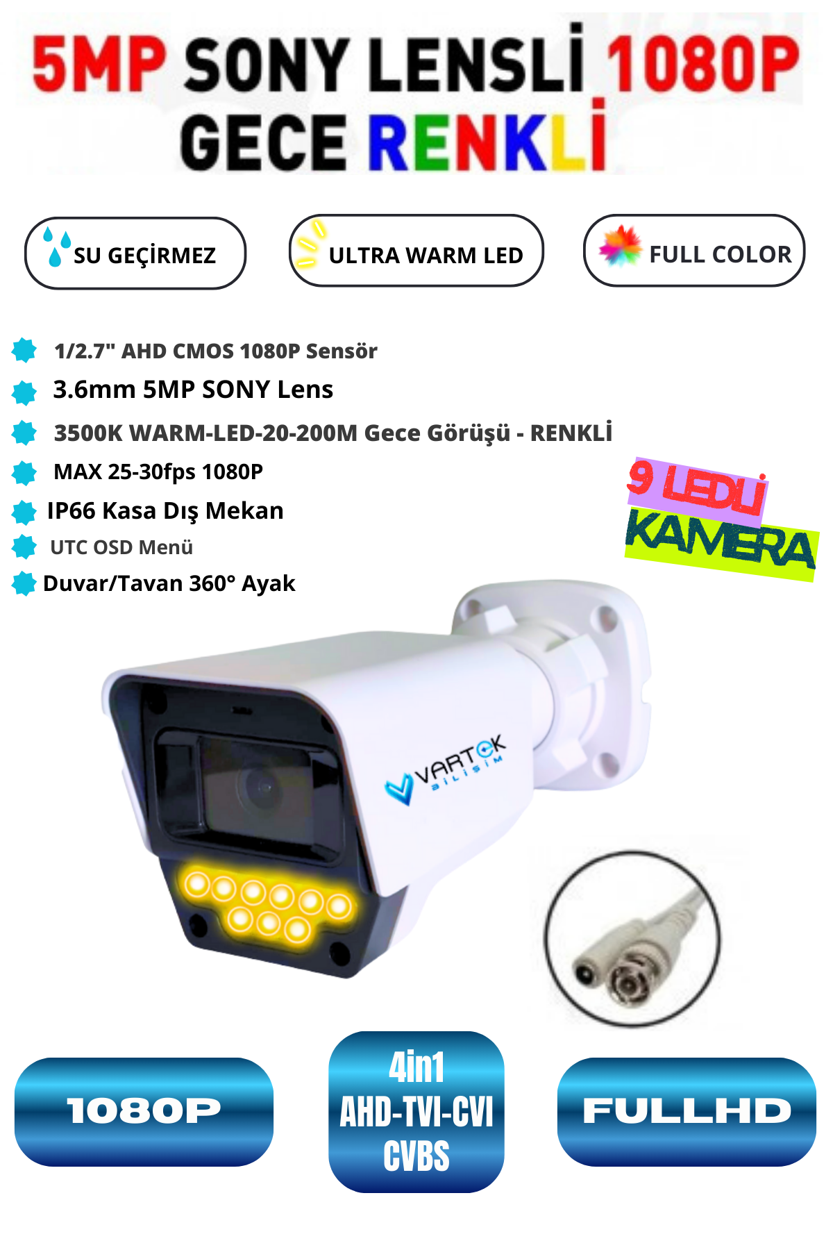 VARTEK BİLİŞİM 9 LED'li Gece Görüşlü Full HD Güvenlik Kamerası Seti - Komple ve Profesyonel Çözüm Güvenliğinizi şansa bırakmayın! VARTEK BİLİŞİM’in yeni nesil 9 LED’li Gece Görüşlü Güvenlik Kamera Seti ile ev ve iş yerlerinizi 7/24 profesyonelce koruma altına alın. Bu set, en üst düzey performansı, en pratik kurulumla birleştirerek size eksiksiz bir güvenlik çözümü sunar. Neden VARTEK BİLİŞİM Güvenlik Kamera Seti? 9 LED Teknolojisi ile Eşsiz Gece Görüşü: Kameralarımız, gelişmiş 9 adet kızılötesi LED ile donatılmıştır. Bu teknoloji sayesinde, zifiri karanlık ortamlarda bile gündüz gibi net, yüksek çözünürlüklü ve ayrıntılı görüntüler elde edersiniz. Artık geceleri de tam kontrol sizde. Full HD Görüntü Kalitesi: Geniş açılı lensleri ve yüksek çözünürlüklü sensörleri sayesinde her bir kamera, alanınızın her köşesini kristal netliğinde kaydeder. Yüz tanıma ve plaka okuma gibi kritik detaylar bile Full HD kalitesiyle gözünüzün önünde. Tak-Çalıştır Komple Paket: Kurulum için ihtiyacınız olan her şey bu pakette! 100 metrelik kablo, her kamera için ayrı power jaklar, kamera sayısının iki katı BNC konektör, DVR kayıt cihazı, yüksek kapasiteli HDD, volt ve DVR adaptörleri ile kablolu mouse ile birlikte gelir. Kutu içeriğini açın ve hemen kullanmaya başlayın. Ekstra parça aramakla vakit kaybetmeyin. Dayanıklı ve Profesyonel Tasarım: Hava koşullarına dayanıklı sağlam dış yapısı sayesinde kameralarımızı hem iç hem de dış mekanlarda güvenle kullanabilirsiniz. Yağmur, kar veya toz gibi zorlu şartlar altında bile üstün performans sergilemeye devam eder. Kesintisiz ve Güvenilir Kayıt: Pakete dahil olan DVR kayıt cihazı ve yüksek kapasiteli HDD ile tüm görüntüleri sürekli olarak kaydedebilirsiniz. Hareket algılama, planlı kayıt ve anlık bildirim gibi gelişmiş özelliklerle kayıtlarınızı dilediğiniz zaman ve yerden kontrol edebilirsiniz. Geniş Kapsama Alanı: 100 metrelik kamera kablosu sayesinde kameraları geniş bir alana yayabilir, evinizin veya iş yerinizin tüm kritik noktalarını tek bir setle güvence altına alabilirsiniz. Paket İçeriği: VARTEK BİLİŞİM Full HD 9 LED Gece Görüşlü Kamera (Seçtiğiniz Adette) DVR Kayıt Cihazı Yüksek Kapasiteli HDD (Sabit Disk Sürücüsü) 100 Metre Kamera Kablosu Kamera Sayısı Kadar Power Jakı Kamera Sayısının İki Katı BNC Konektörü Kamera ve DVR İçin 12 VOLT Adaptör Kablolu Mouse Güvenliğinizi Profesyonellere Bırakın. |