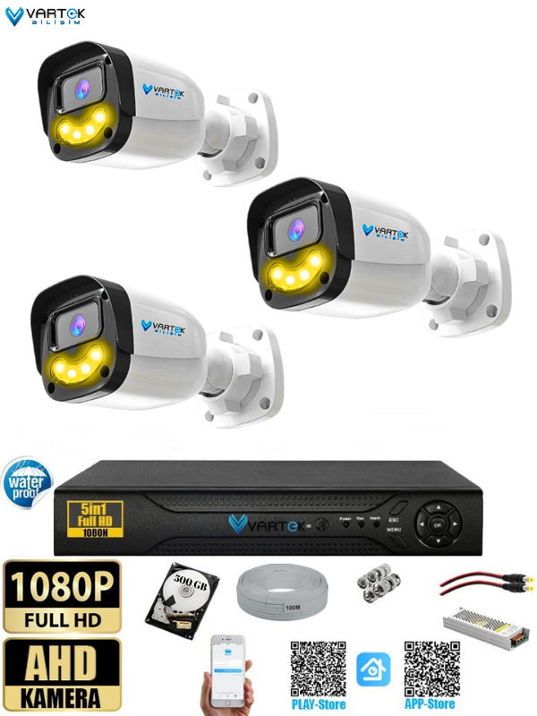 3`lü 5MP Full HD 1080P Atom ledli 500GB HDD Güvenlik Kamera Seti Gece Renkli Tak Çalıştır İp gerektirmez