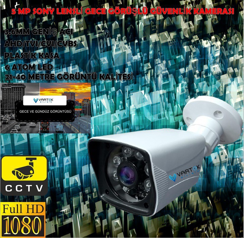 4 Kameralı Gece Görüşlü 5MP Sony Lensli AHD Güvenlik Kamerası Seti