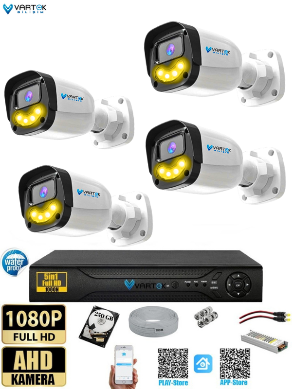 4`lü 5MP Full HD 1080P Atom ledli 250GB HDD Güvenlik Kamera Seti Gece Renkli Tak Çalıştır İp gerektirmez