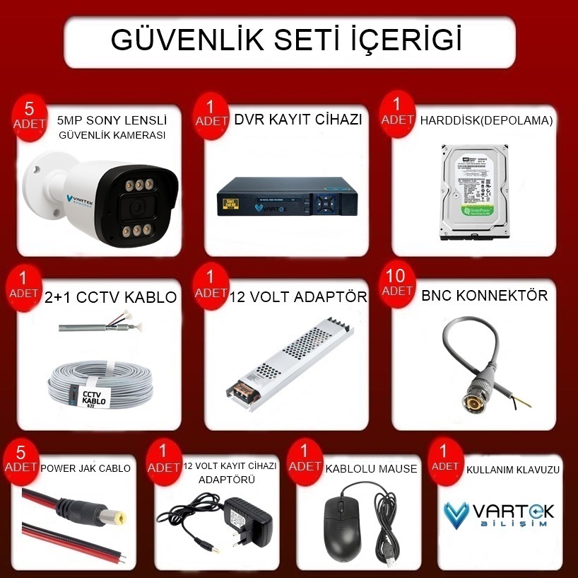 5 Kameralı 6 Mega Led Gece Renkli 320GB HDD 5MP Ahd Güvenlik Kamerası seti için henüz yorum yapılmadı. Bu ürüne ilk yorumu yapan siz olun!