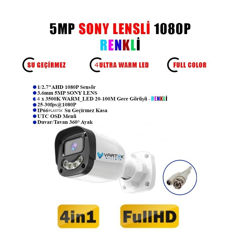 5 Adet 5MP Gece Renkli AHD Kamera
