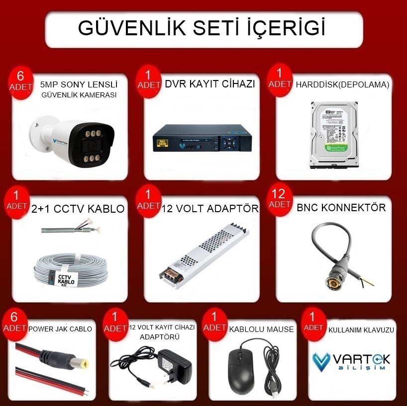 6 Adet 5MP Gece Renkli AHD Kamera
