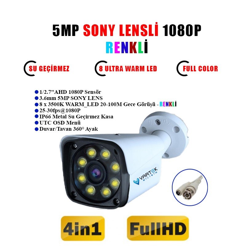 6 Adet 5MP Gece Renkli AHD Kamera