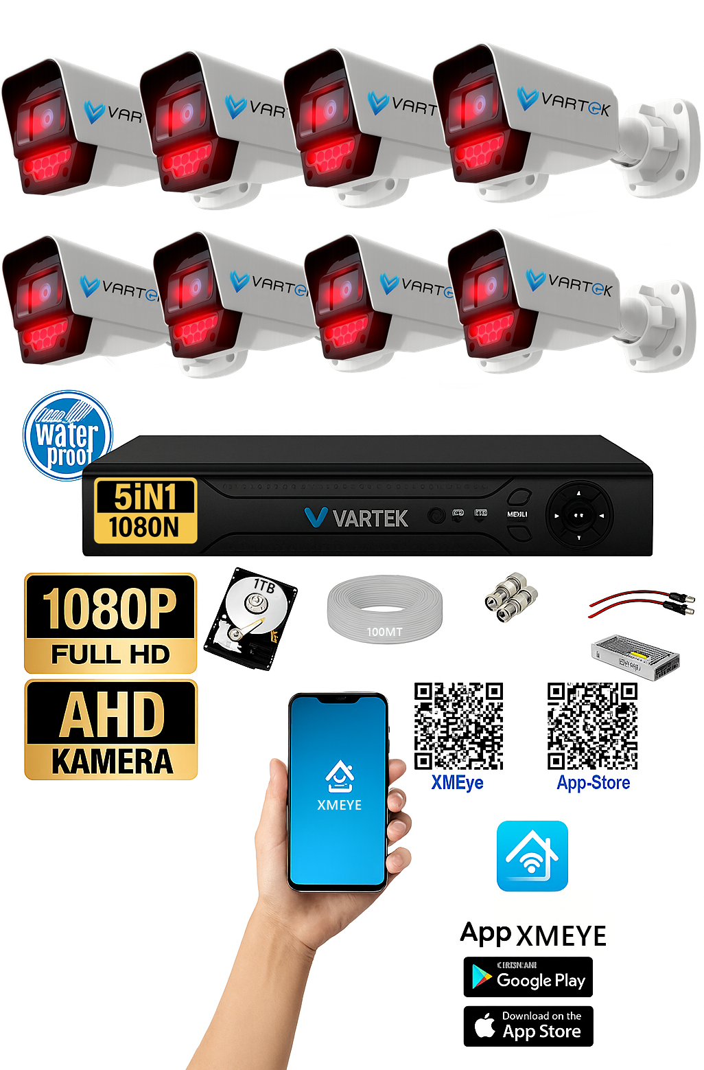 8 adet 5MP gece görüşlü AHD kamera