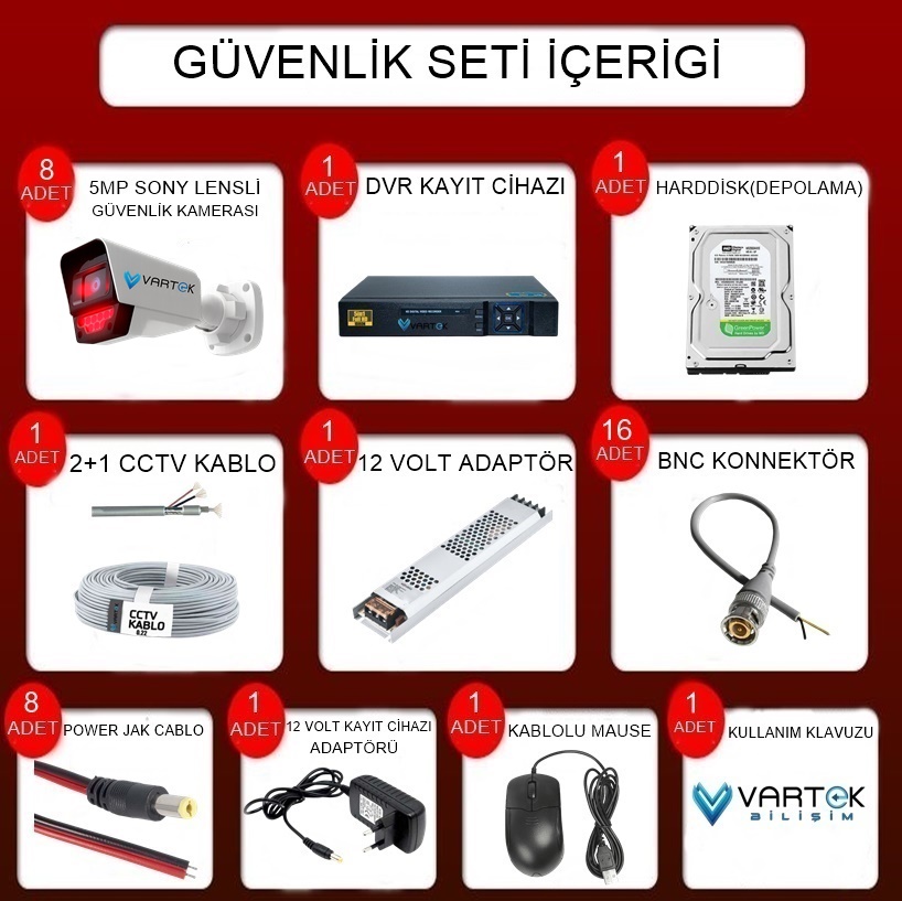 8 Kameralı Gece Görüşlü 5MP Sony Lensli AHD Güvenlik Kamerası Seti