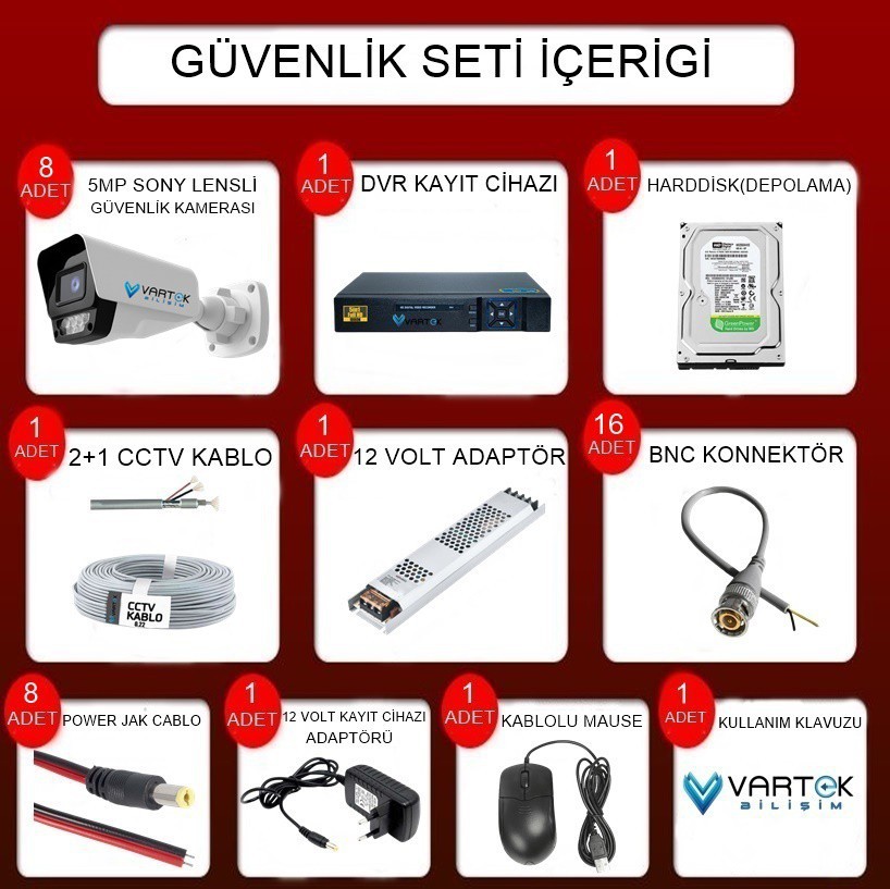 8 Kameralı 9 Atom Led Gece Renkli 1000GB HDD 5MP Ahd Güvenlik Kamerası seti için henüz yorum yapılmadı. Bu ürüne ilk yorumu yapan siz olun!