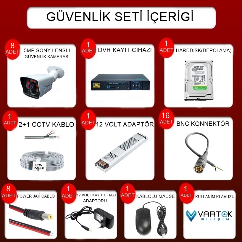 6 adet 5MP gece görüşlü AHD kamera