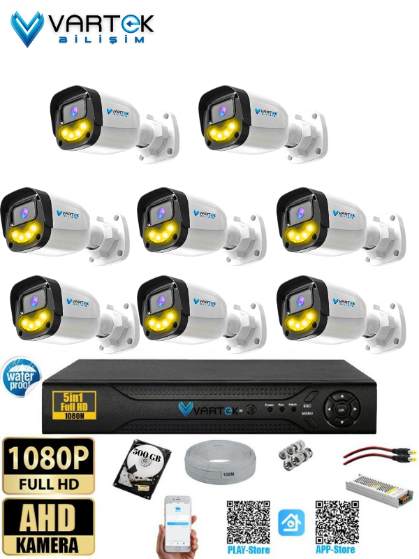 8`lı 5MP Full HD 1080P Atom ledli 500GB HDD Güvenlik Kamera Seti Gece Renkli Tak Çalıştır İp gerektirmez