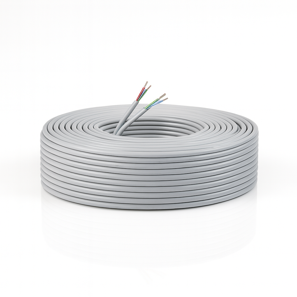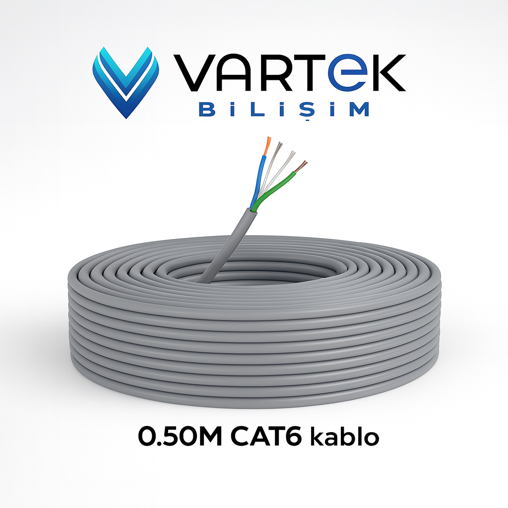 CAT6 100 Metre 0.50mm veri kablosu, ağ bağlantılarında kullanılmak üzere hazırlanmış bir iletim kablosudur. İç yapısında bulunan bükümlü iletkenler, veri akışının düzenli bir şekilde ilerlemesine yardımcı olur. Gri dış kaplaması, kablonun farklı ortamlarda rahatça kullanılmasını sağlar.