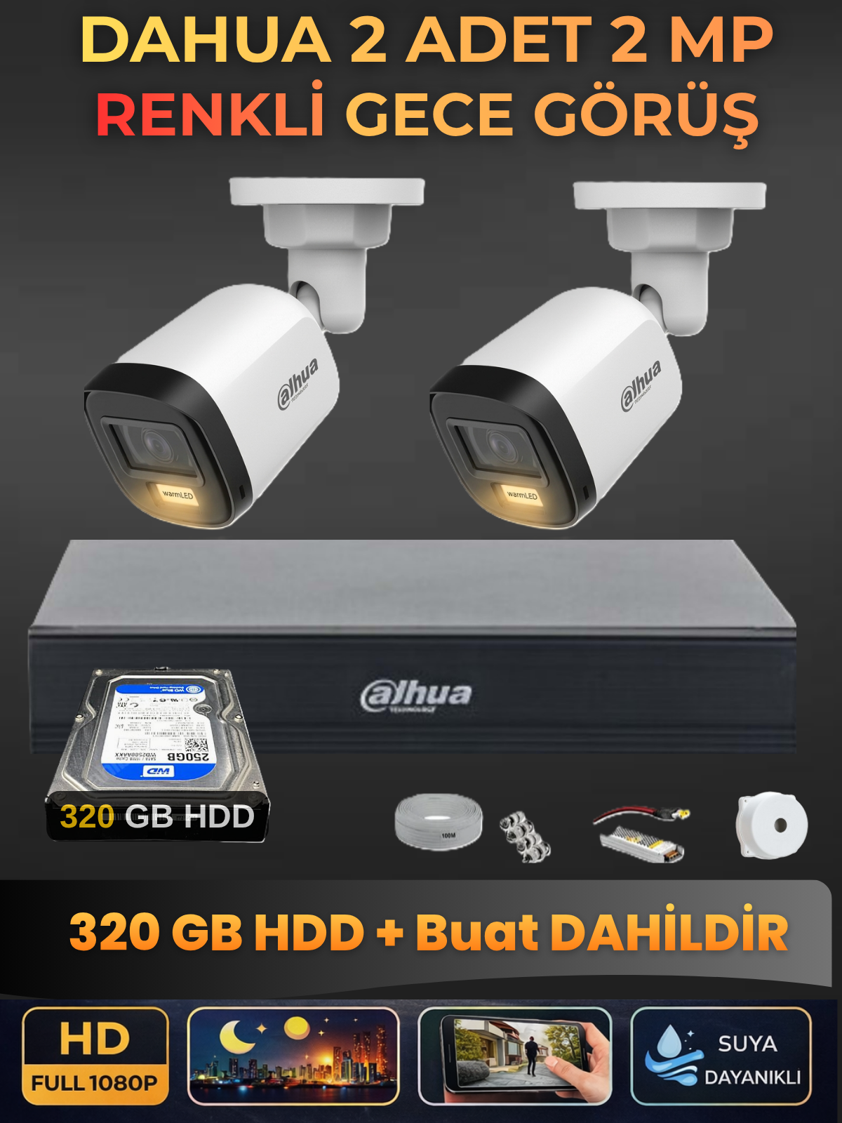Dahua 2 Kameralı 2mp Gece Renkli Güvenlik Kamerası Seti, 320 GB Hdd, Fullhd Iç Dış Mekan Uyumlu için henüz yorum yapılmadı. Bu ürüne ilk yorumu yapan siz olun!