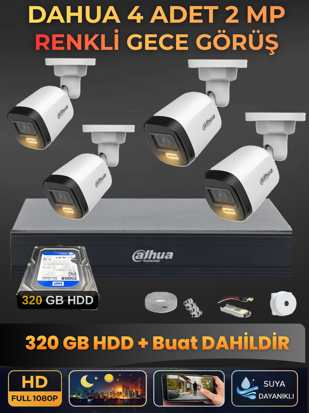 Dahua 4 Kameralı 2mp Gece Renkli Güvenlik Kamerası Seti, 320 GB Hdd, Fullhd Iç Dış Mekan Uyumlu için henüz yorum yapılmadı. Bu ürüne ilk yorumu yapan siz olun!