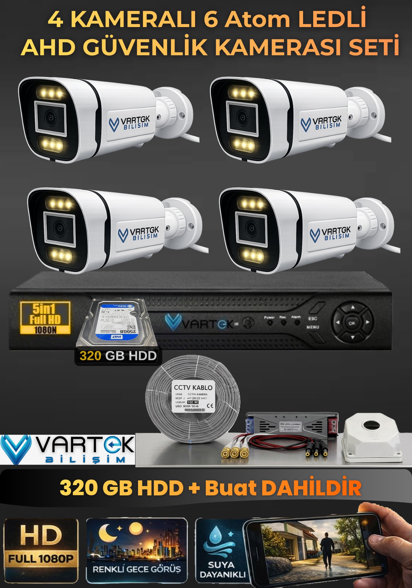 VARTEK BİLİŞİM 4 Kameralı 6 Atom Led Gece Renkli kamerasiGörüşlü Güvenlik Kamerası Seti + 320 GB HDD için henüz yorum yapılmadı. Bu ürüne ilk yorumu yapan siz olun!